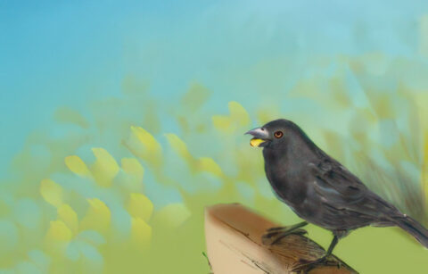 Entonces le pidió a uno de sus sirvientes llamar a todos los pájaros. El primero en llegar fue el dziú, un pájaro con plumas de colores y ojos cafés. Apenas se acomodaba en una rama cuando llegó a toda prisa el toh, un pájaro negro cuyo mayor atractivo es su larga cola llena de hermosas plumas.